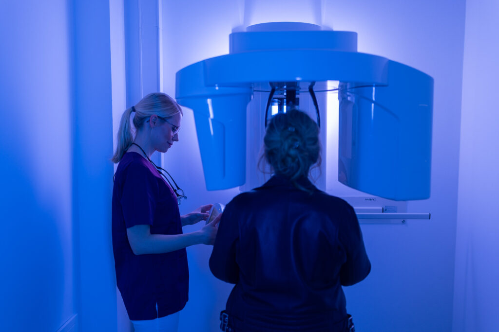Zusätzlich haben Sie bei uns exklusiv die Möglichkeit eine dreidimensionale Aufnahme von einer bestimmten Region ihres Kiefers anfertigen zu lassen. Diese sogenannte DVT- Aufnahme (digitale Volumentomographie) bietet bei bestimmten diagnostischen Fragestellungen große Vorteile. So können komplizierte Kanalverläufe oder nicht sichtbare Kanäle der Zahnwurzeln präzise dargestellt werden, die auf den normalen Röntgenbildern meist nicht sichtbar sind, aber für den Erfolg der Behandlung maßgeblich sein können.