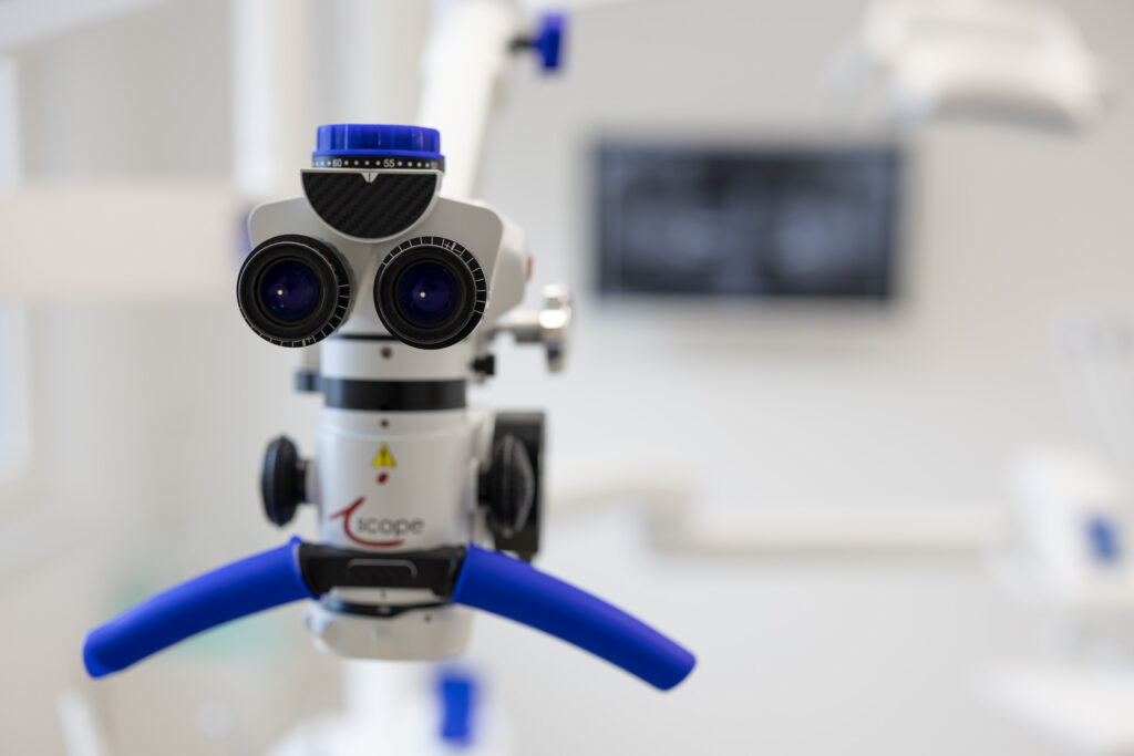 Zusätzlich haben wir die Möglichkeit das Dentalmikroskop einzusetzen, welches bis zu 25-fach vergrößern kann.